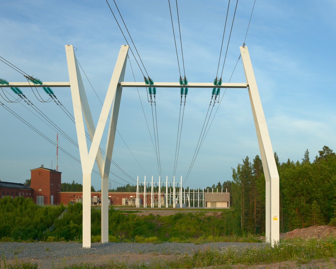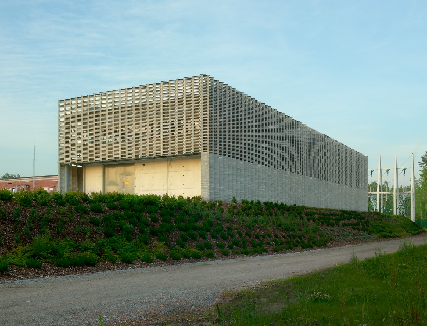 The Finnish main grid operator Fingrid Ltd wanted to respect their roots at this location by investing in the quality of design and construction of the modernisation project. It comprises a new switchgear building, three landscape power pylons, and two powerline terminals.