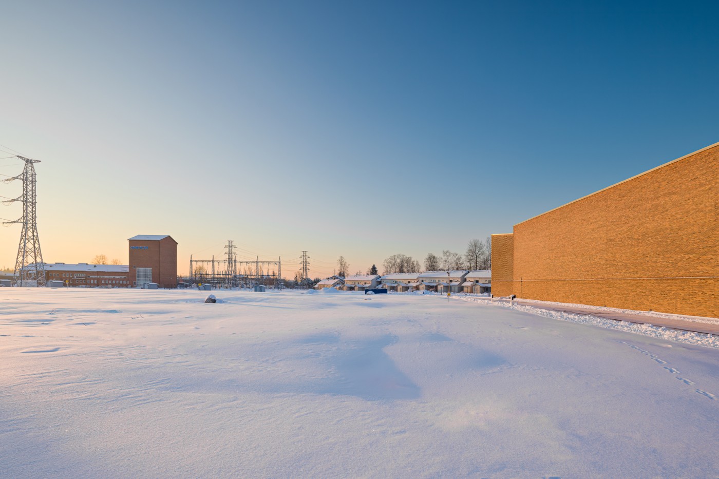 The project comprises a 110 kV switchgear building, a standby power container, landscaping, and new transmission line structures. The oldest building on the site is a former substation building designed by architect Aarne Ervi in 1947, consisting of a low, long volume terminating in a tall tower. Similarly, the architecture of the new switchgear building is based on the division of the mass into different blocks. In addition, the steeply pitched roof and the red and orange brick cladding of the facades tie the new building to the shape and colour of the old building.